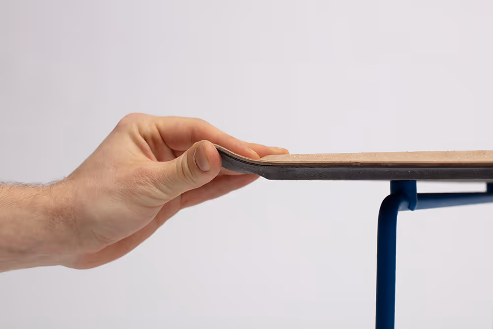 RELEA_Construct ist ein Material für konstruktive Anwendungen. In Lagen verklebt und gepresst, erzeugt es formstabile Bauteile für im Mobility-Bereich, für Verstärkungsteile in Fashion und Lederwaren sowie für den Formteilebau im Interior-Segment. RELEA_Construct entsteht aus Echtleder-Reststoffen der Schuh-, Taschen- und Automobilherstellung.
